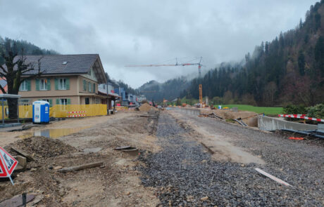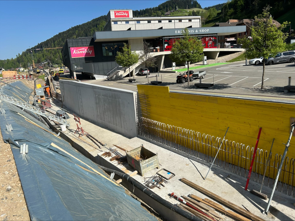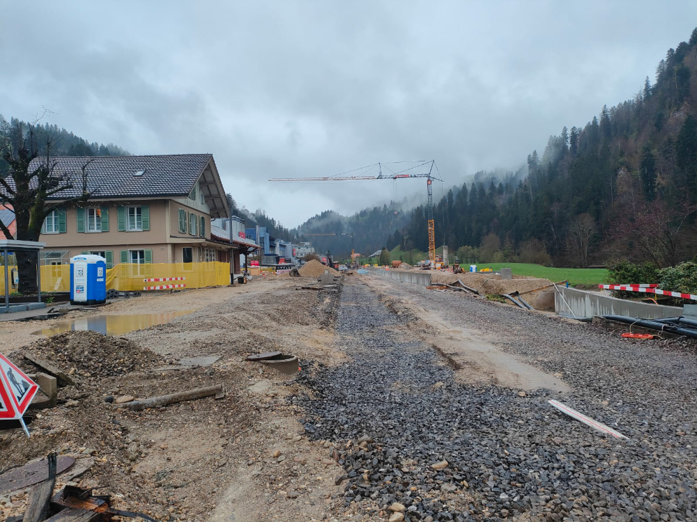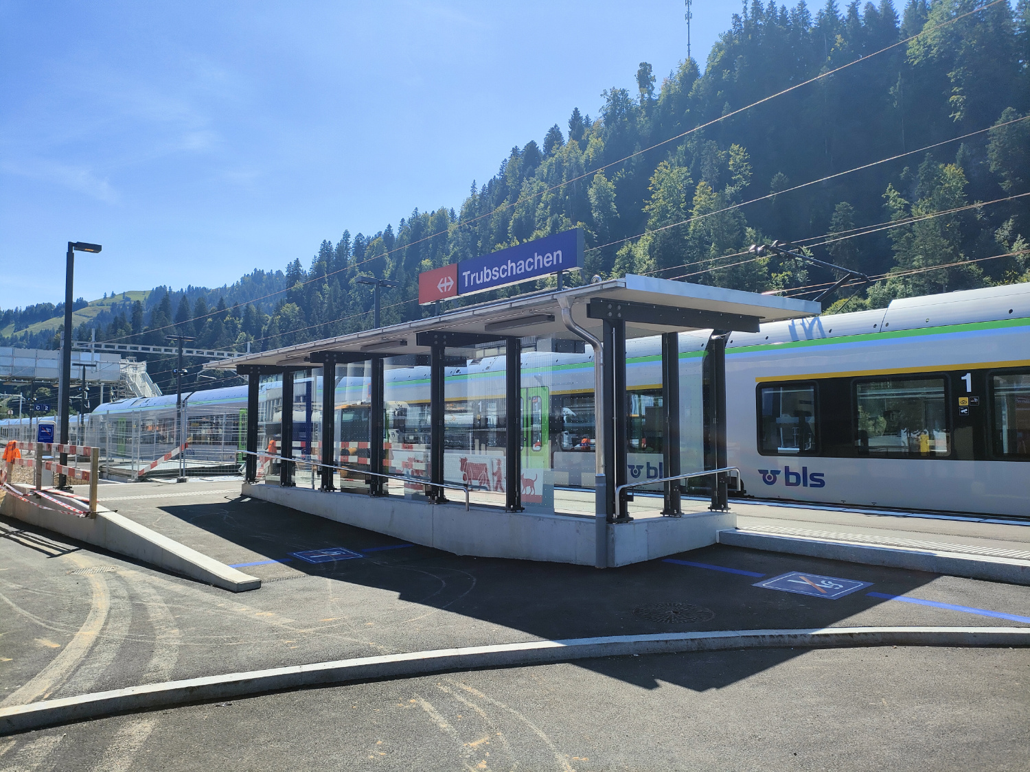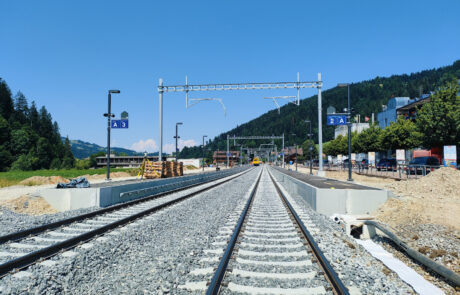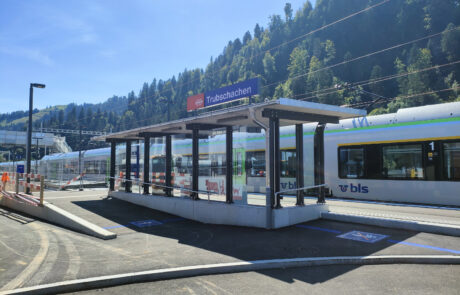 Behindertengerechter Umbau des Bahnhofes. Bau einer provisorischen Passerelle. Neubau von zwei Aussenperrons, L = 220 m, P55. Oberbausanierung im Perronbereich (Schotterreinigung). Unterbausanierung mit PSS und neuer Gleisentwässerung. Erstellung FS-, SA- und KAB-Anlagen. Neubau von zwei Bahnübergängen. Bau einer Stützmauer im Bereich Parkplatz Kambly. Neubau von zwei Personenunterständen. Neubau Velounterstand